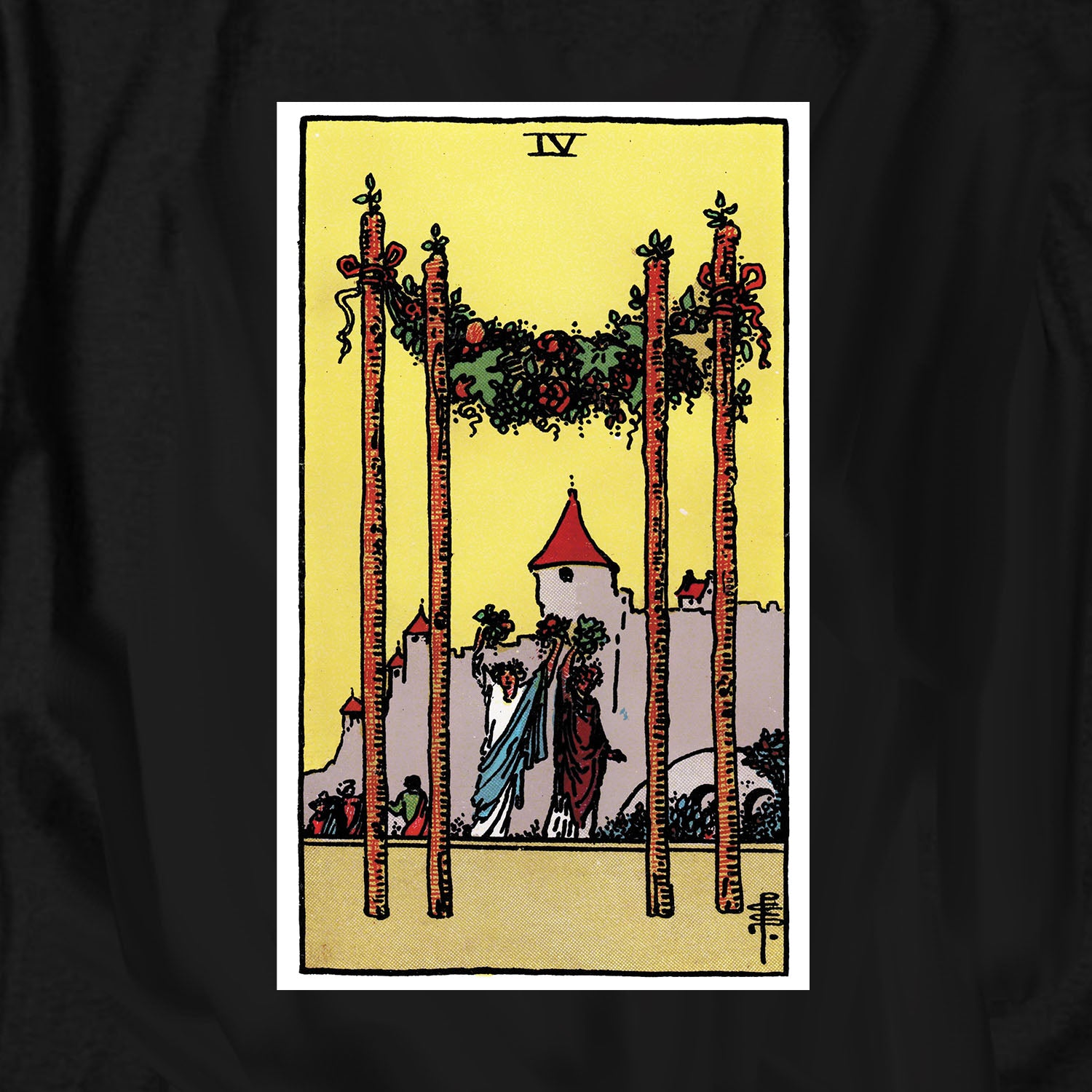 Perfect as a gift for tarot readers, spiritual seekers, or anyone who appreciates symbolic art, this T-shirt turns the uplifting message of the Four of Wands into a fashionable statement you can carry with you wherever you go. Step into the celebration — your journey has led you here.