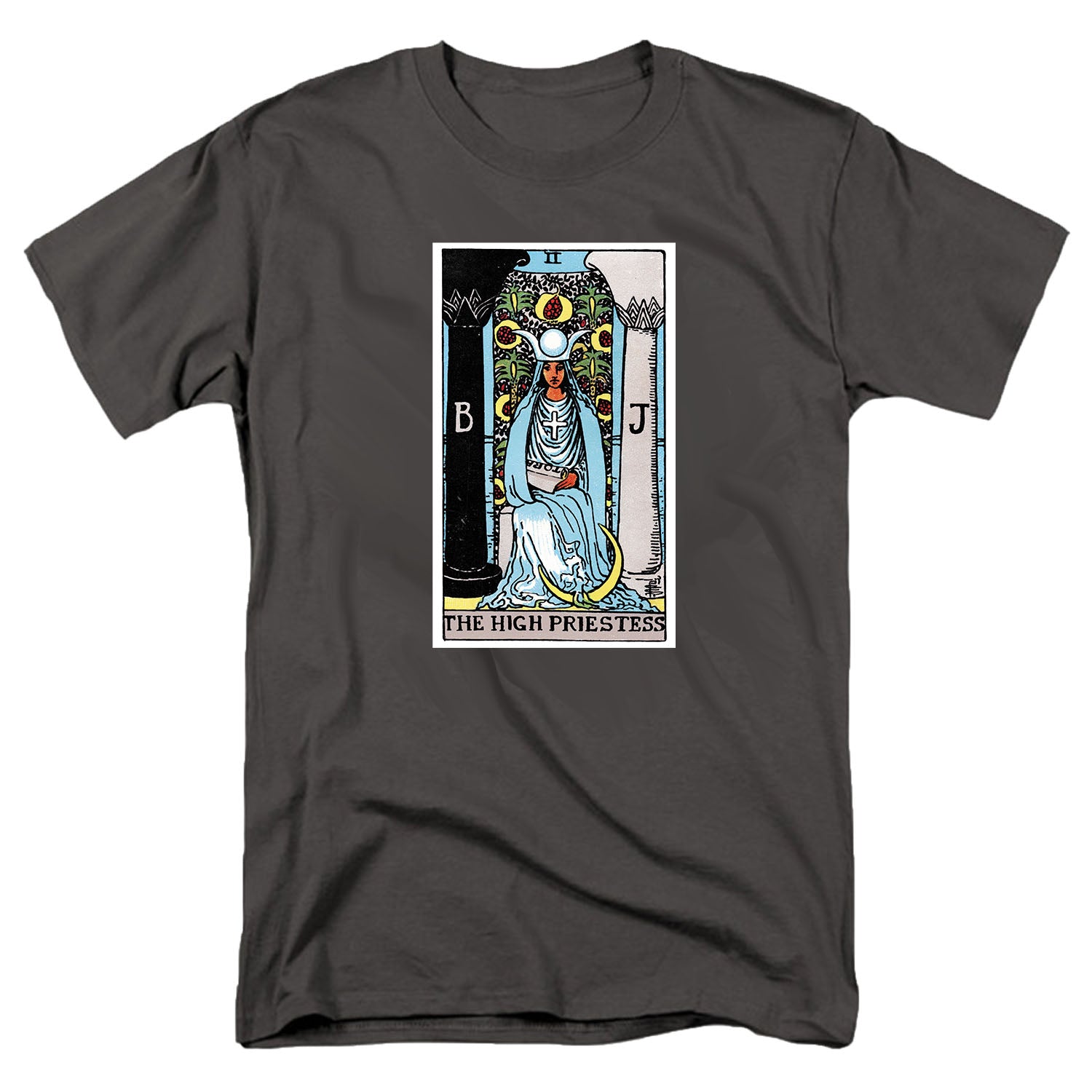 The High Priestess T-Shirt is a powerful and mystical piece of apparel designed for those who are drawn to the deeper wisdom of the tarot. She represents the inner voice that guides us beyond the surface of life, reminding us that true understanding comes not only from logic but also from trusting the mysteries that lie within. Often depicted sitting between two pillars, the High Priestess embodies balance, duality, and the gateway to higher consciousness. Her presence in a reading encourages patience, reflection, and a deeper awareness of one’s subconscious mind.