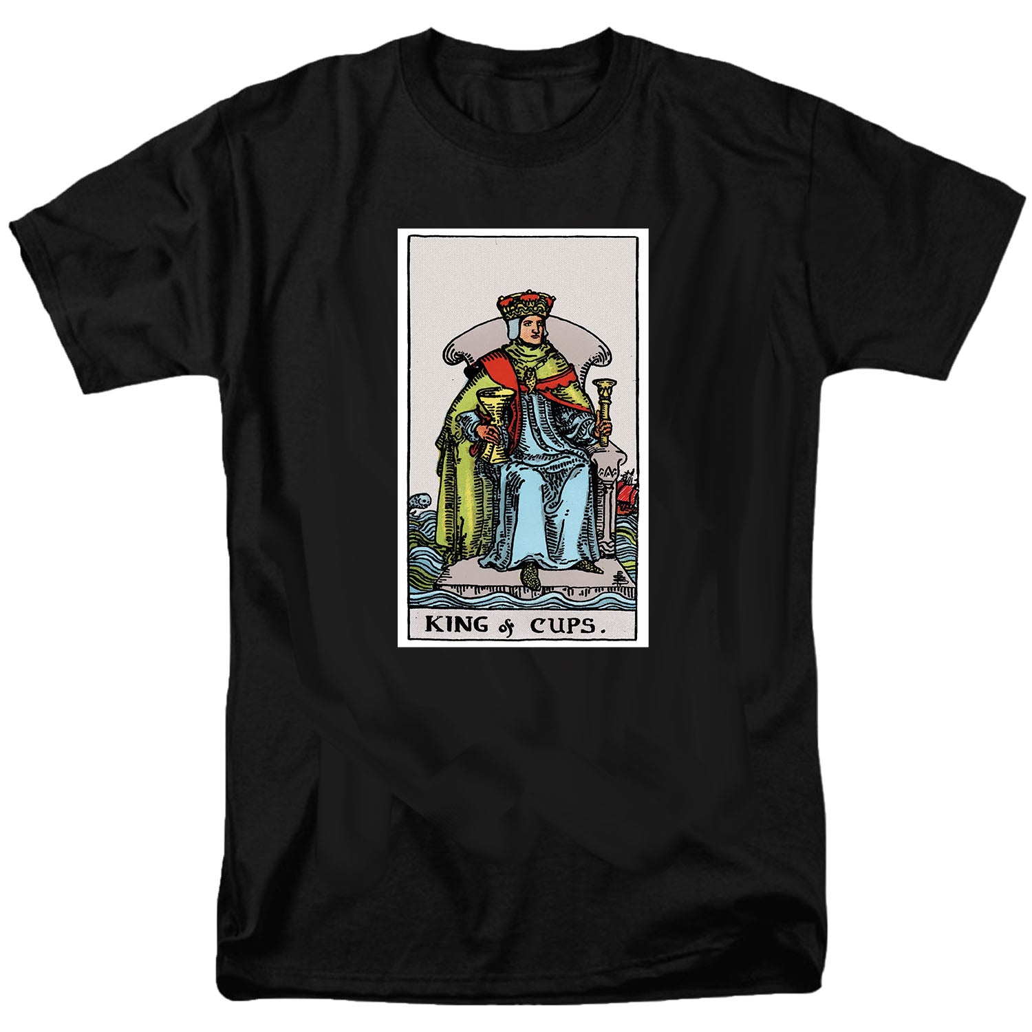 The King of Cups T-Shirt is a powerful and symbolic piece inspired by the timeless imagery of tarot cards. Within the tarot, the King of Cups represents emotional balance, wisdom, compassion, and maturity. This figure embodies a calm and composed presence, someone who leads with empathy rather than force, and who can navigate even turbulent waters with grace and understanding. Known as the master of emotions, the King of Cups signifies both control and generosity, showing that true strength often lies in kindness and patience. Wearing this shirt allows you to channel the qualities of harmony, diplomacy, and inner strength that this card conveys.