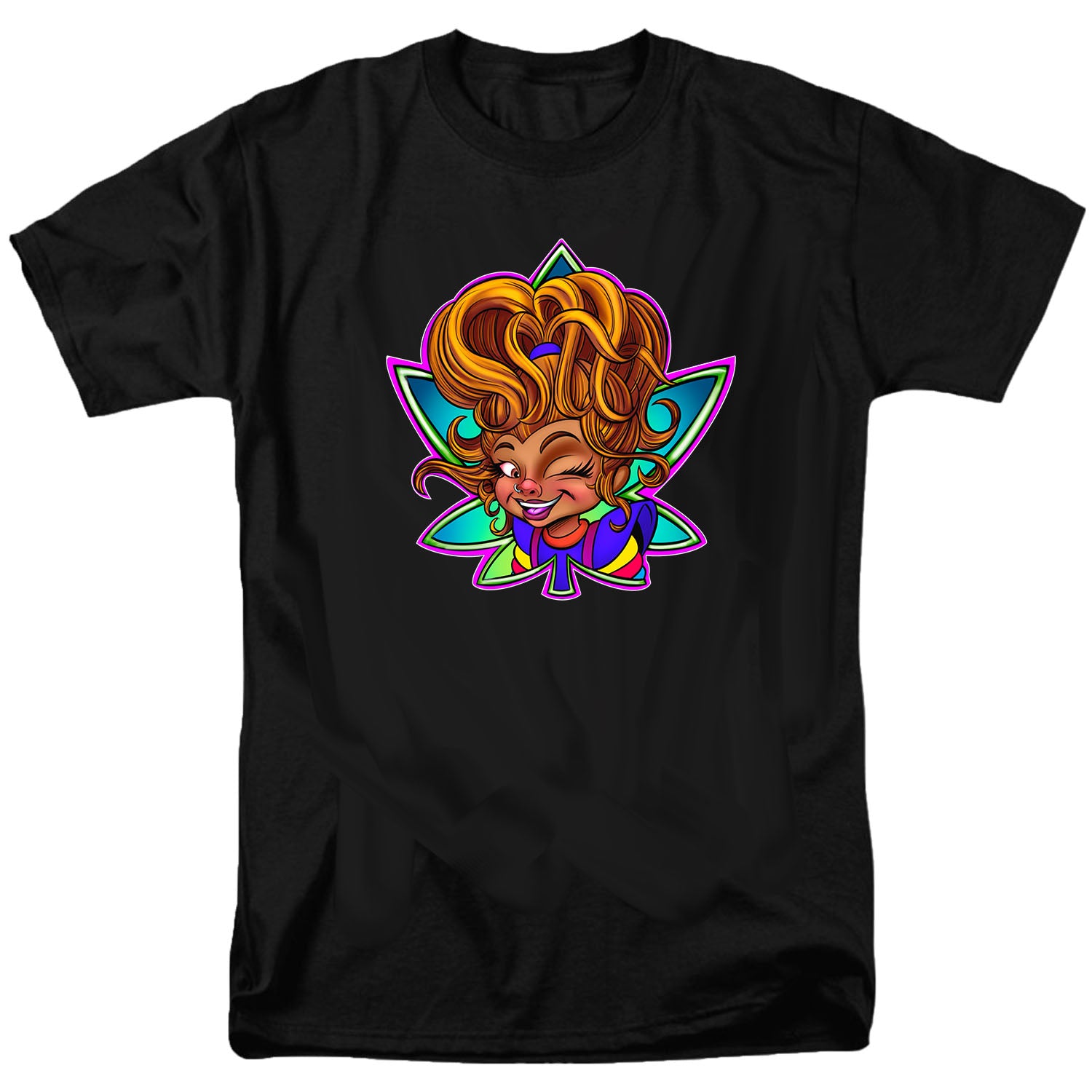 The design featured on this shirt captures the spirit of their artistry—playful, radiant, and unforgettable. A winking character with golden curls takes center stage, surrounded by a vivid neon-outlined leaf that feels alive with energy. The use of bold outlines, glowing colors, and cartoon-like exaggeration mirrors the way this artist approaches their music: full of personality, charm, and authenticity. For fans of expressive fashion, this shirt delivers the same kind of originality that has drawn listeners and art lovers alike to their growing body of work.